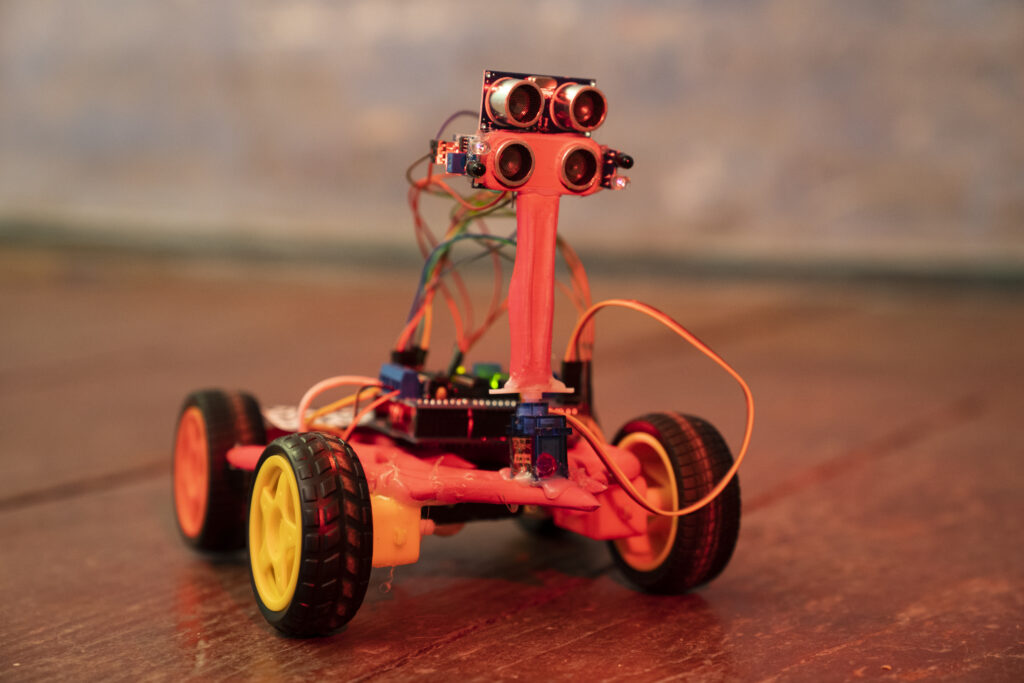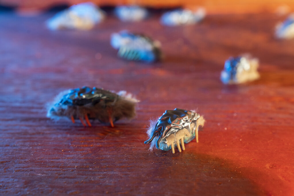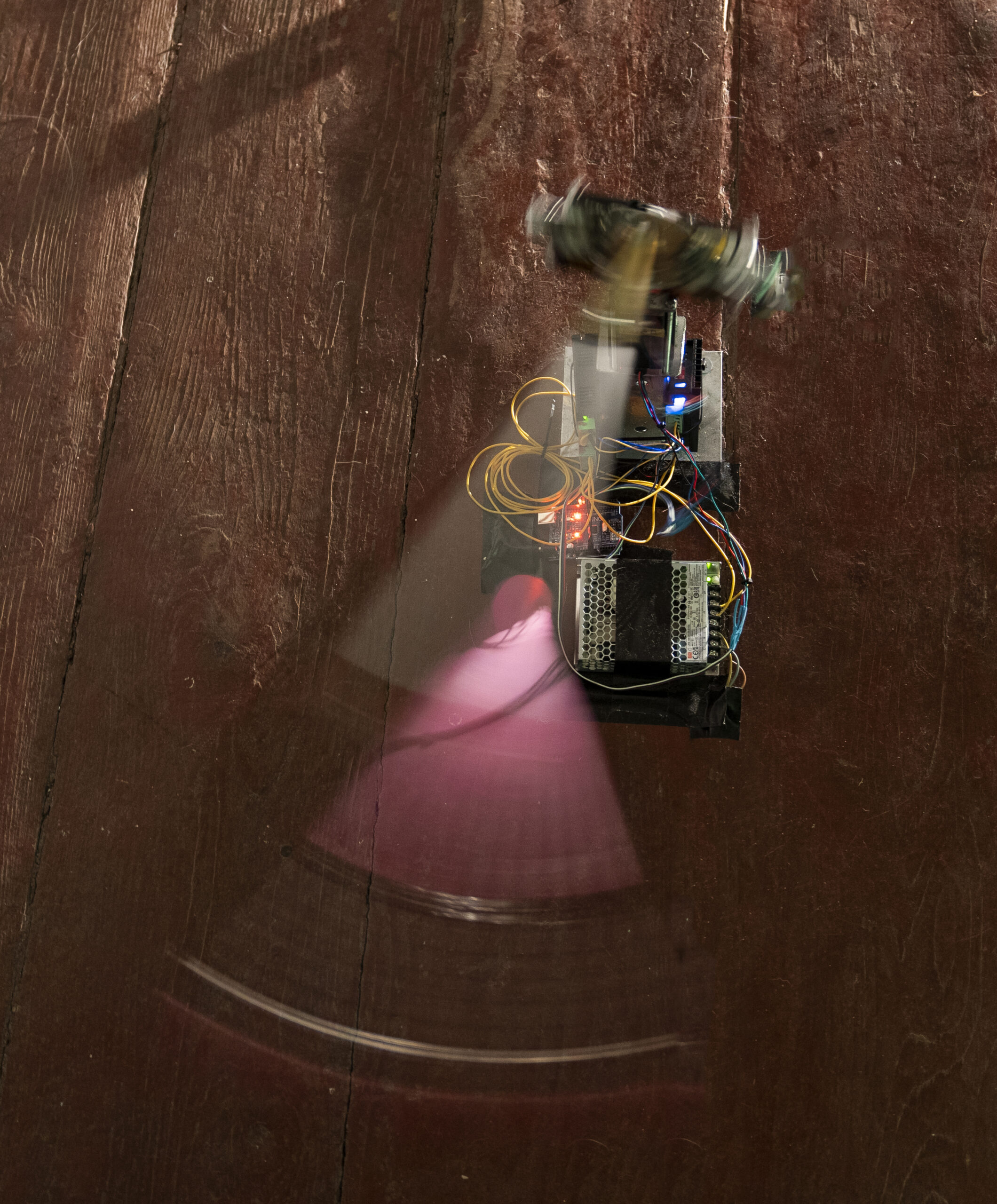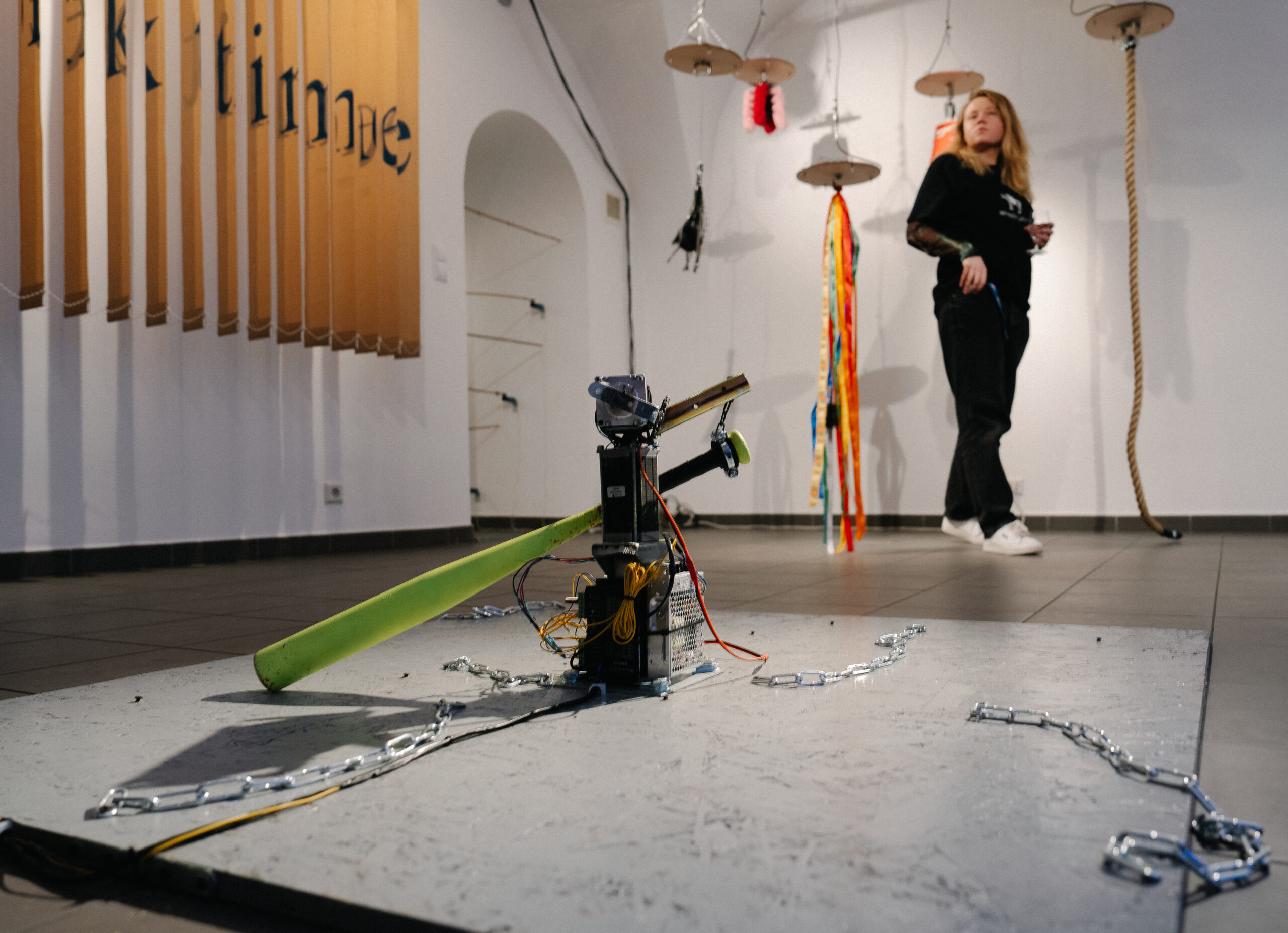 installation / AR, AI, electronic circuit, stepper motor, servomechanism, 3d printing, fabric, pc fan, hexbug, baseball, chain